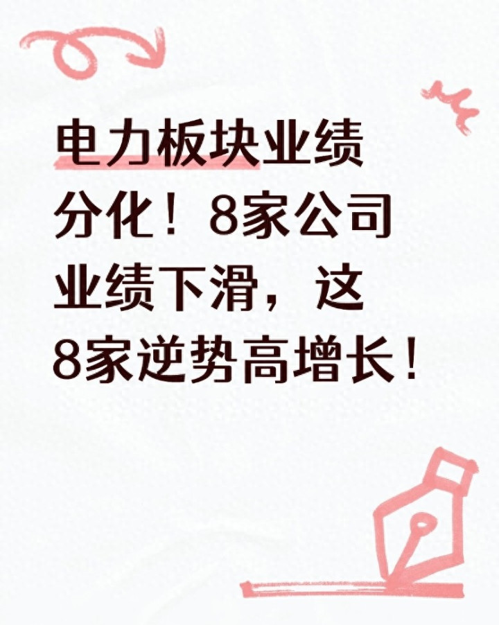 与高增长企业形成对比的是,另一部分电力相关公司则面临经营压力。根据业绩预告,有8家公司净利润同比出现下滑,其中6家公司出现净利润亏损,经营承压明显。这部分企业中,包括ST合纵、广西能源、长源电力等。